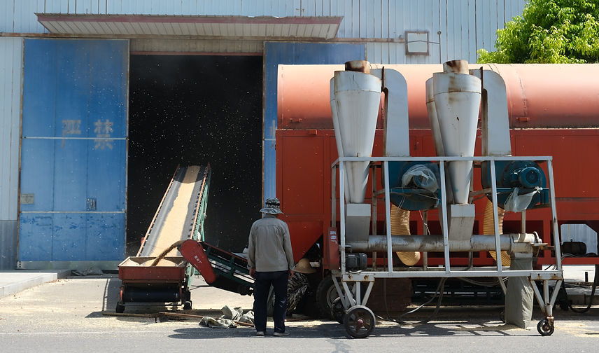Grain being offloaded into the villages flour mill.